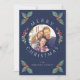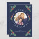 Modern Navy Blue Winter Botanicals Christmas Photo Holiday Card.