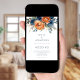 Modern Navy Burnt Orange Florals QR Code Wedding Invitation