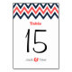 Modern Navy & Coral Chevron & Lovebirds Wedding Table Number