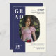 Invite guests to your graduation party with this chic minimal photo graduation party invitation template. The design features one photo, sophisticated colour palette including navy blue and cream, and bold modern typography. Personalise it with your details and favourite photo.