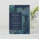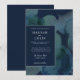 Elements: rich dark tones, abstract watercolor background, light frame details, and classic serif fonts. Colours: blue, green, navy, dusty blue, steel blue, slate blue, sage green, hunter, highland, mint. Themes: modern, contemporary, abstract, moody, under the sea, ocean, dark colour tones, minimalist, painterly, bohemian. Collection: Modern Navy Emerald Abstract Watercolor Wedding Collection. Product Type: Wedding Invitations