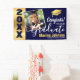 A modern 'Congrats to our Graduate' banner, featuring a photo of the grad, a navy blue background that can be changed to any colour, a faux gold graduation cap, their name, school and class year.