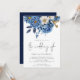 Modern Navy Gold Florals QR Code Wedding Invitation