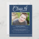 Add any year and name to personalize this elegant and modern design. This can be used for any graduate - high school, college, grad school, med school or even trade school. The navy border over a graduation photo with party information on the front.