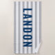 Modern Navy Grey Stripe Monogram Name Beach Towel