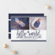 A navy hand-lettered hello world photo birth announcement postcard to welcome your new arrival. Send out this card to friends and family so they can see your new bundle of joy.