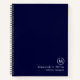 Modern notebook features a minimal design in navy blue with white accents. Custom name presented in the lower right-hand corner in stylish simple font with a complimentary minimal monogram medallion.