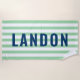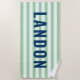 Modern Navy Mint Stripe Monogram Name Beach Towel
