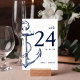 Modern Navy Nautical Sketch Anchor Table Number