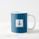 Modern Navy Striped Nautical Last Name Anchor Coffee Mug