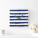 This chic square clock has a navy blue and white watercolor striped background with a smattering of simulated gold confetti overtop and red numerals. If you require any assistance, please email niteowlstudio@gmail.com.