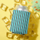 Modern Neon Blue and Black 3D Metal Effect Stripes Can Cooler