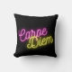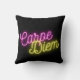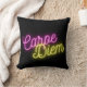 Modern, fun and inspirational neon pink and yellow "carpe diem" word art throw pillow is a reminder to "Seize the day!" Perfect for dorm rooms, teen bedrooms and modern themed family or game rooms.