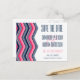 modern neon pink navy blue geometric chevron pattern save the date, pretty, modern, minimalistic and stylish geometric zigzags chevron pattern with navy blue, neon pink and pastel pink colour palette. Perfect for summer and spring wedding with a nautical wedding theme.