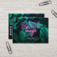 Add your name and contact info to this modern skincare/beautician business card, featuring tropical dark green foliage and a midnight blue frame. The words "Skin" and "lounge" are in purple and pink neon typography with your name underneath it, and your contact details on the back of the card. There's a QR code as well, where you can add your social media URL. Contact the designer if you would like a different colour on the neon text.