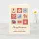 Merry Christmas for nephew and his family card with cute illustrations of snowflakes, a sweater, and gifts.