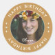 Modern Neutral Script Elegant Happy Birthday Photo Classic Round Sticker