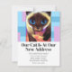 This modern cute pet Siamese cat with beige back side and grey text is a great image on this moving announcement card. I painted this fancy cat awhile ago and now I am happy to know that this is going to be on a card. If you can not find what you like just send me an email jraym48@gmail.com and I will be happy to create a new design that you love. Copyright ©Jude Maceren artist.