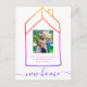 Simple elegant minimalist colourful new home handwriting calligraphy script photo moving announcement postcard. +++++++++ Easy to personalise with your text and custom photo on both sides.
