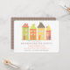 A fun design features a row of sweet little houses in cheerful shades of green, orange and brown in this contemporary take on a Housewarming Party theme.