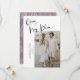 A unique way to announce your wedding day change of plans. This new save the date design features a modern calligraphy script along with your awesome photo. The back of the card features an iridescent rose-gold abstract pattern against a lavender background. You can easily customise your personal info of choice. Check out the background colour options in our: Okay, Change of Plans Collections