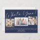 Modern what a year script, send your new year greeting and add 3 of your favourite photos in black and white with a green and red floral winter bouquet with navy blue.