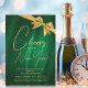 MODERN New Years Eve Gold Green Sparkle Sequin Bow Invitation