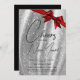 MODERN New Years Eve Silver Sparkle Sequin Red Bow Invitation