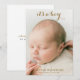 It's a boy! A simple modern, newborn baby boy photo birth announcement card, featuring a sweet, adorable, sleeping baby, with name and birth stats in gold typography. Simply replace the sample photo with your own sweet baby photo. You may use the simple design tool to change fonts and font colours from gold to black if you prefer. Available in print, as a digital download, or both! Digital option to send speedily on your phone, when you can't wait to display your new member of the family!
