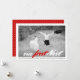 Modern newlywed Christmas flat photo card with the phrase "Our first Noel" in red and white and your photo. The back includes a red and white polka dot pattern.