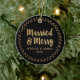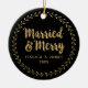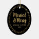 Modern Newlywed Photo Married and Merry Ceramic Ornament
