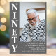 This men's 90th Birthday Bold Type Photo Invitation is perfect for celebrating the man in your life who's turning ninety. The word "ninety" is in a fabulous bold cap font in white on grey. You choose the photo which makes this invitation unique to your guest of honour. The templates are very easy to use and it takes just a minute to type in your information and upload a favourite photo and see your fabulous 90th birthday invitations.