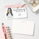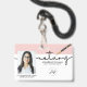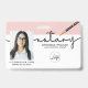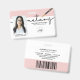 Modern photo Notary business badge features single photo, typography script ''notary'', logo, your name and title on the front. Personalise further with your contact details, and bar code on the back.