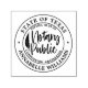Modern Notary Public self inking stamp. Design features round border, typography script notary public in trendy handwritten lettering and a feather ''pen''. Personalise with your details.