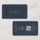 Modern Notary Public Signing Agent Dark Blue Monogram Professional Dark Blue business card with QR code