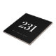Modern Number Address Black & White Ceramic Tile. Gorgeous modern design features customisable numbers and address text. Shown in white text on black - all colours and fonts are customisable. We invite you to visit our Zazzle store, GJ Design Co, to view matching products and more.