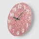 Modern Numbers Faux Sparkly Rose Gold Glitter Large Clock