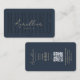 Modern Nurse Healthcare Professional Monogram Dark Blue business card with QR code
