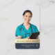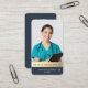 Modern Registered Nurse Practitioner Elegant Dark Blue Gold with full photo, monogram initials, and QR code business card. Perfect for healthcare professionals!
