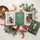 Add a whimsical touch to your holiday greetings with our bold and modern Nutcracker Christmas Photo Tri-Fold Holiday Card, featuring original hand-drawn illustrations by ©Moodthology Papery. Your favourite photo is framed by a striking green and pink striped ribbon and surrounded by charming nutcrackers, drums, geometric trees, violins, and festive florals. The cheerful message “Joyous Holiday” and vibrant colour palette—deep green, red, golden yellow, mint, violet, and soft pink—bring a fresh, artistic energy to your seasonal traditions. Personalise with your family name and year. The inside continues the festive theme ribbons frame design to display two photos in the inside and an additonal third photo on the inside flap for a cohesive, joyful finish. Hand-drawn design by ©Moodthology Papery