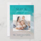 stylish christmas card design featuring trendy mix of bold and script font, space for your chosen photo on front with beach and sea graphic on reverse