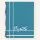 Modern Ocean Blue Custom Name Minimalist Notebook