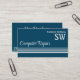 YOUR FAVORITE - Make a lasting impression with this modern and simply business card design featuring stylish light grey stripes on a plain ocean blue background with monogram.