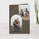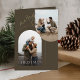 Send elegant family christmas card greetings with this modern, minimalist folded card. The clean and simple design features a stylish arch frame against a deep olive background, perfect for your outdoor family holiday photos. A timeless handwritten script adds a chic touch, making it a wonderful choice for a first christmas as a family of 3. Personalise the inside with your own christmas wishes card with family photos and messages to create a cherished keepsake for the new year.