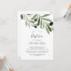 This modern olive branch baptism invitation is perfect for a boho baby baptism. The rustic yet elegant design features simple watercolor botanical green leaves and black olives on a small branch with a classic mediterranean feel.