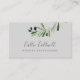This modern olive branch grey business card is perfect for a small business owner, consultant, stylist and more! The rustic yet elegant design features simple watercolor botanical green leaves and black olives on a small branch with a classic mediterranean feel.