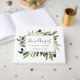 This modern olive branch wedding guest book is perfect for a boho wedding. The rustic yet elegant design features simple watercolor botanical green leaves and black olives on a small branch with a classic mediterranean feel. Personalise the front cover with the names of the bride and groom and the wedding date.
