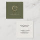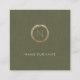 Modern Olive Green Linen Elegant Gold Monogram Square Business Card