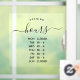 Modern window decal reading your opening / business hours in warm, modern typography and a hand written script. Simple, elegant solution for any small business.
