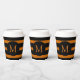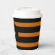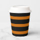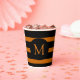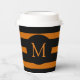 This stylish design features orange and black horizontal stripes with a round black centre monogram and the letter in an orange block font for October holiday parties.
